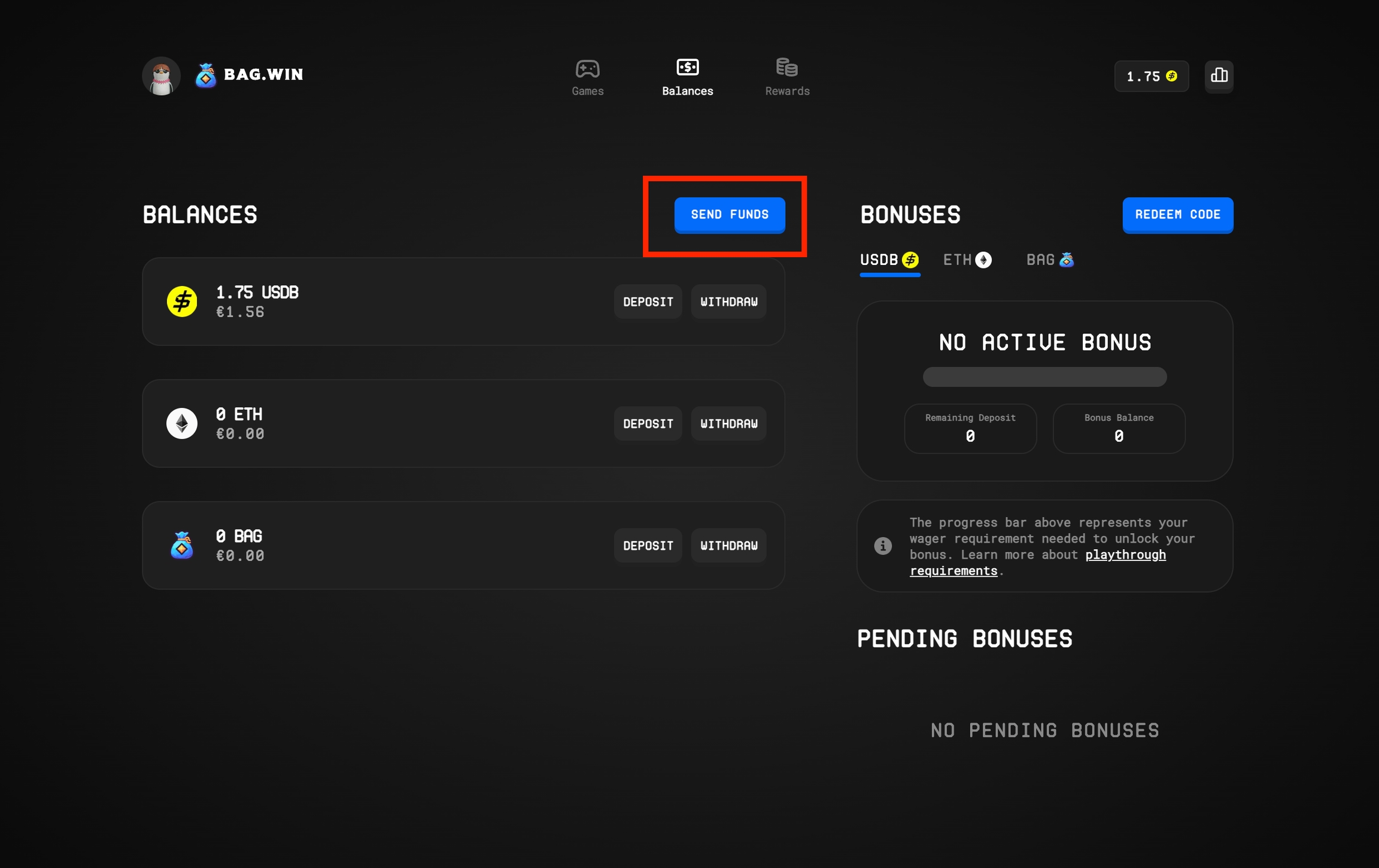 Paso 1: Inicia sesión en bag.win y cliquea Balances.