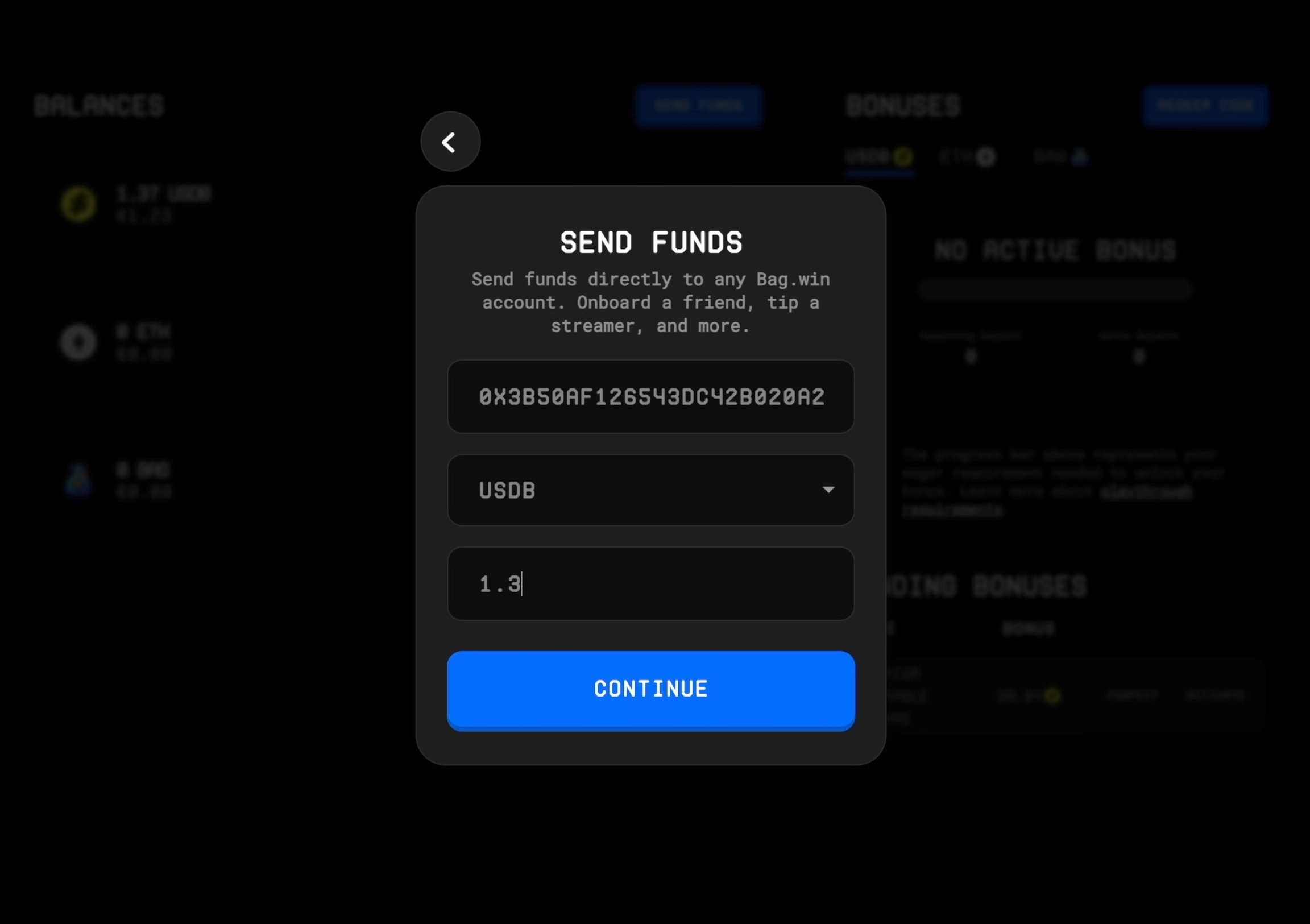 Aquí tienes los pasos para regalar fondos en bag.win. También puedes chequear nuestro video tutorial.